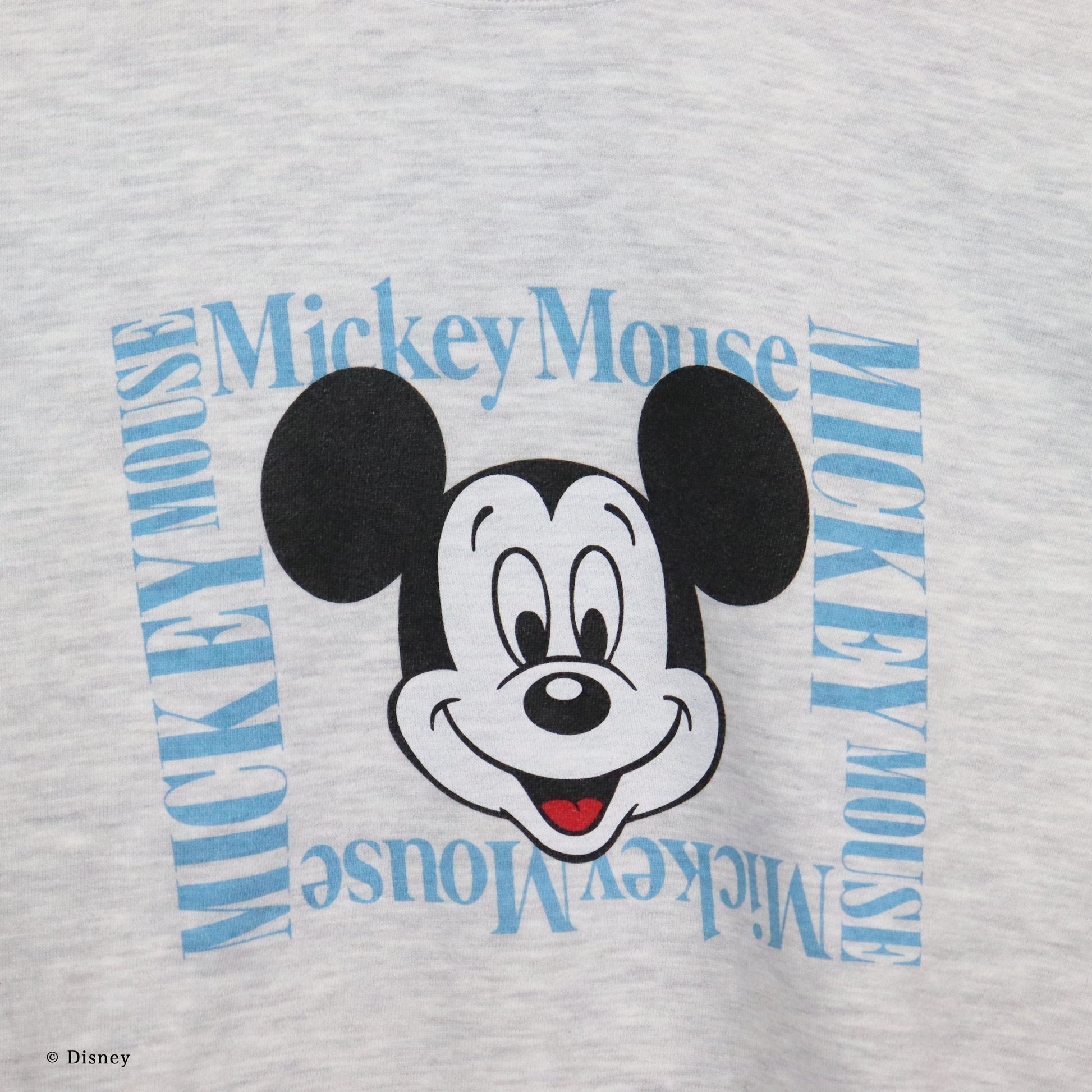フロントには、「MICKEY」のロゴと「ミッキーマウス」のシルエットを大胆に配置。アッシュカラーのボディに映えるグラフィックが、シンプルながらも存在感を放ちます。