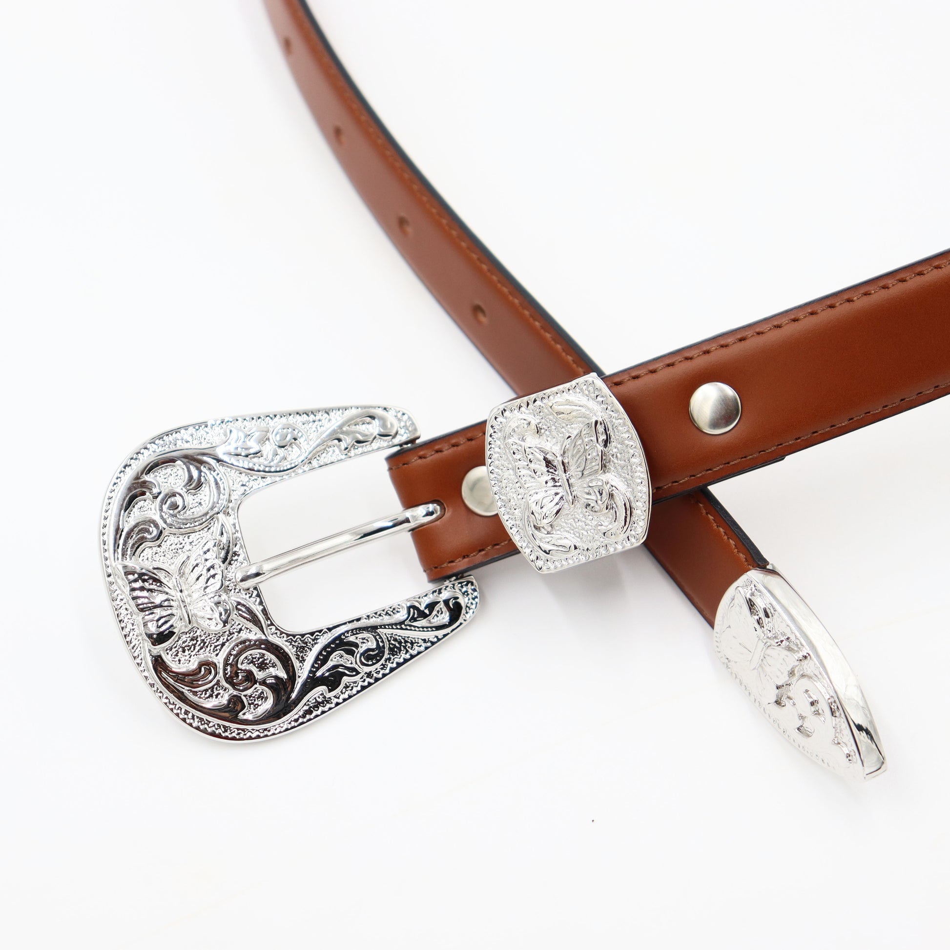 Papillon Western Tip Belt - Steer Leather.