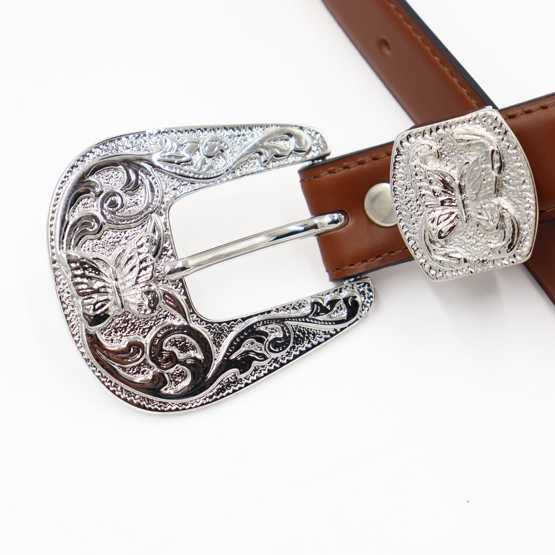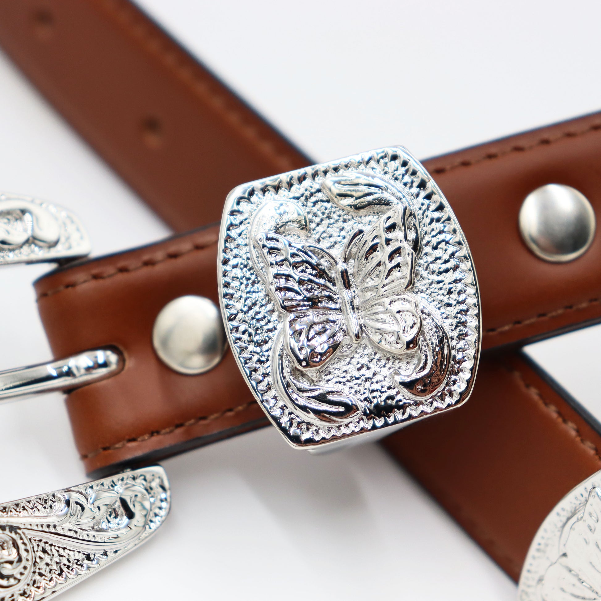 The buckle features a decorative design with a Western feel, and subtly incorporates the butterfly ornament, an icon of NEEDLES.