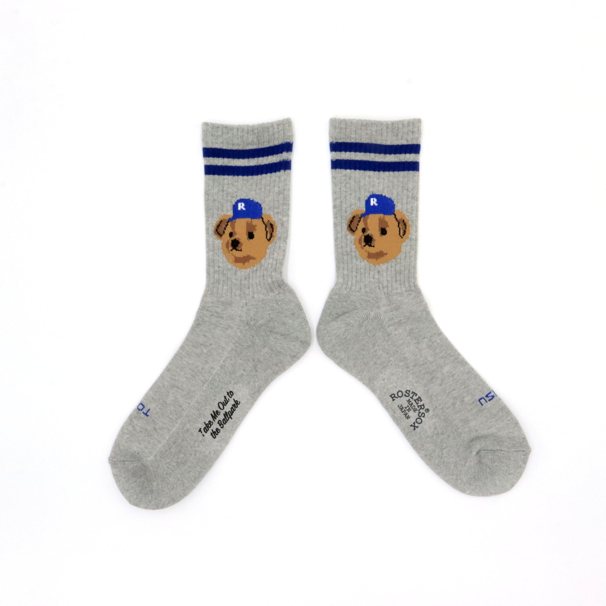 These socks feature a bear's face design wearing a cap. The opening has a line that matches the body color, giving it a casual and playful design.