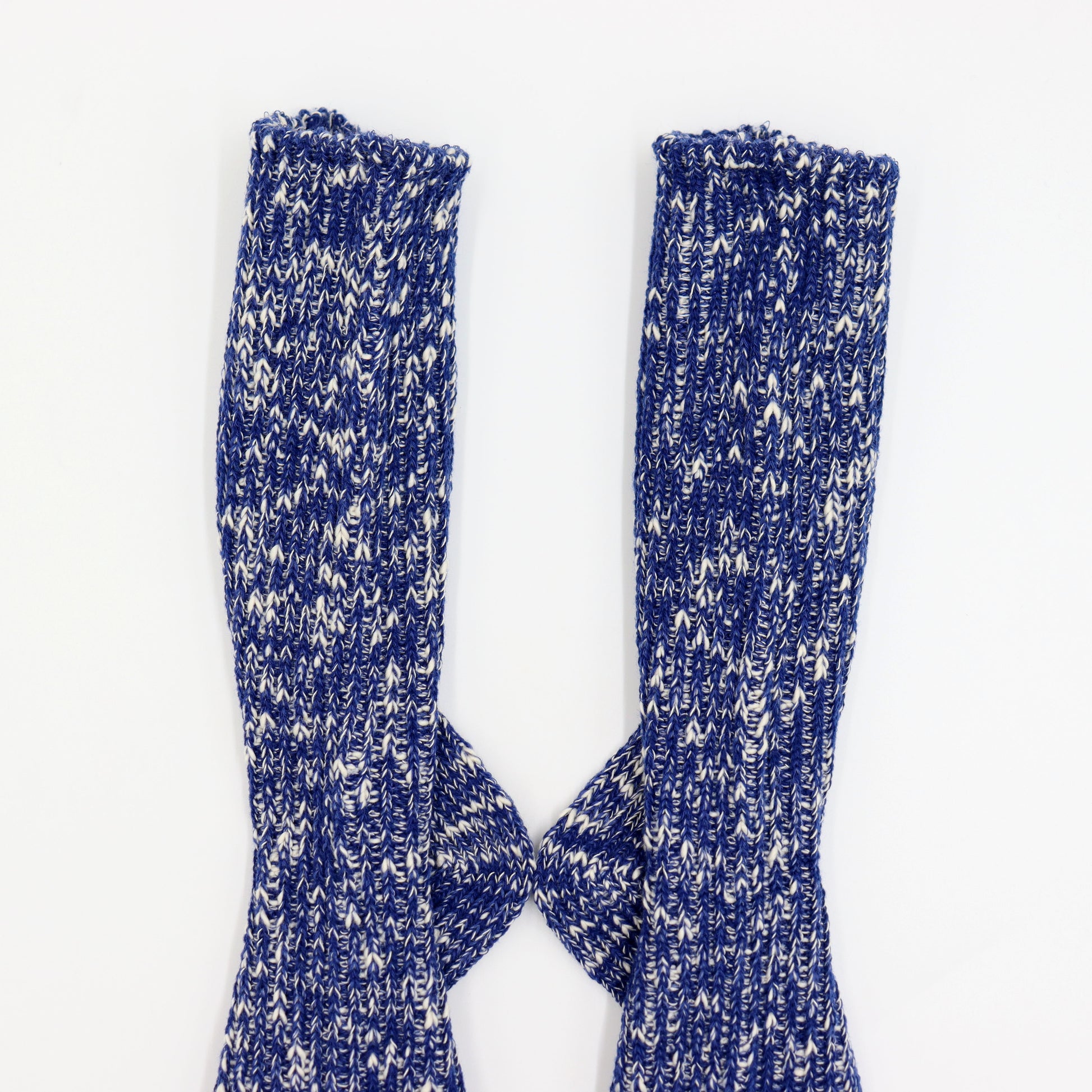These socks are carefully knitted on an old-fashioned pile machine. By mixing cotton yarn with slub yarn, we were able to create a soft and tasteful texture. They are just the right thickness, providing both breathability and a good fit.
