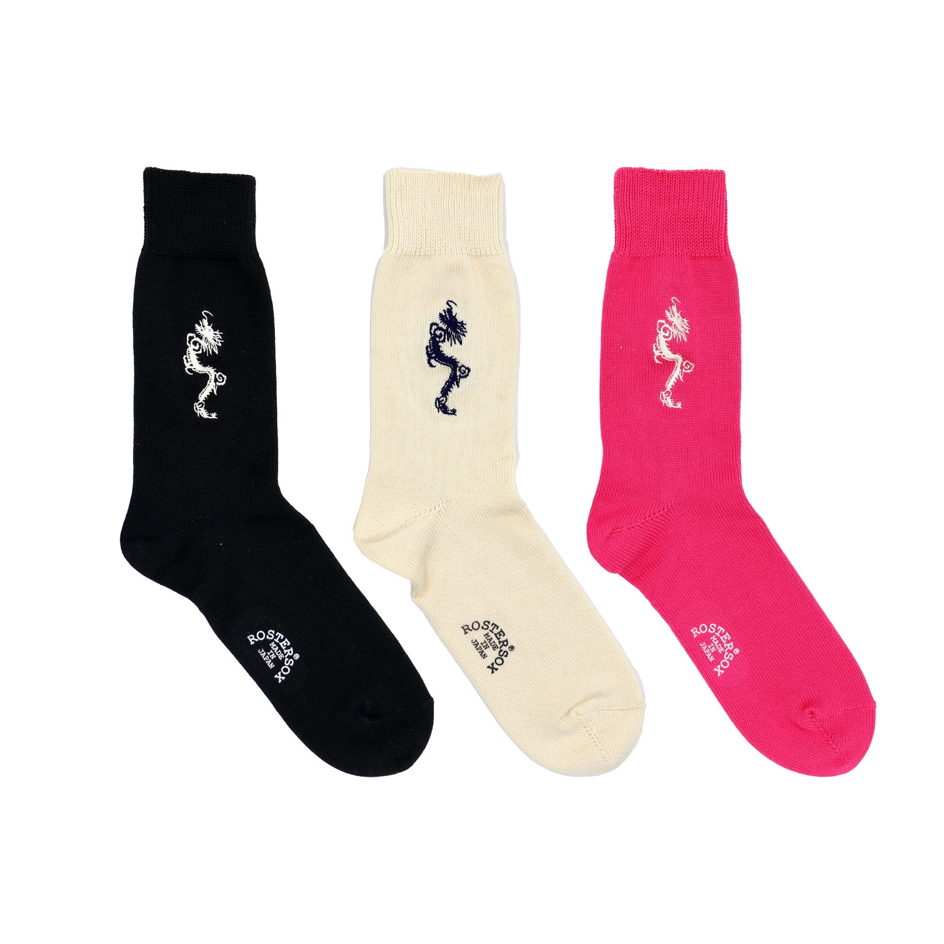 From the X-Machine series come these socks with embroidered dragons!